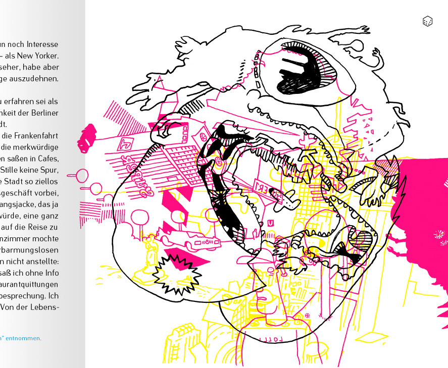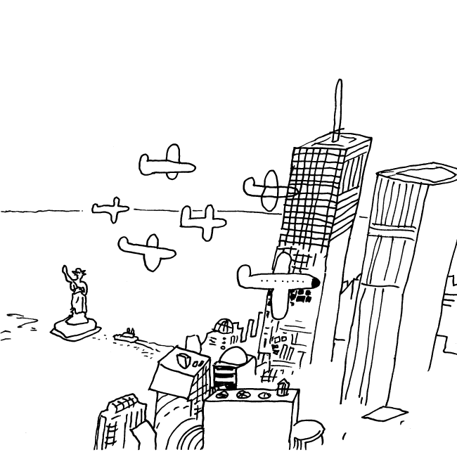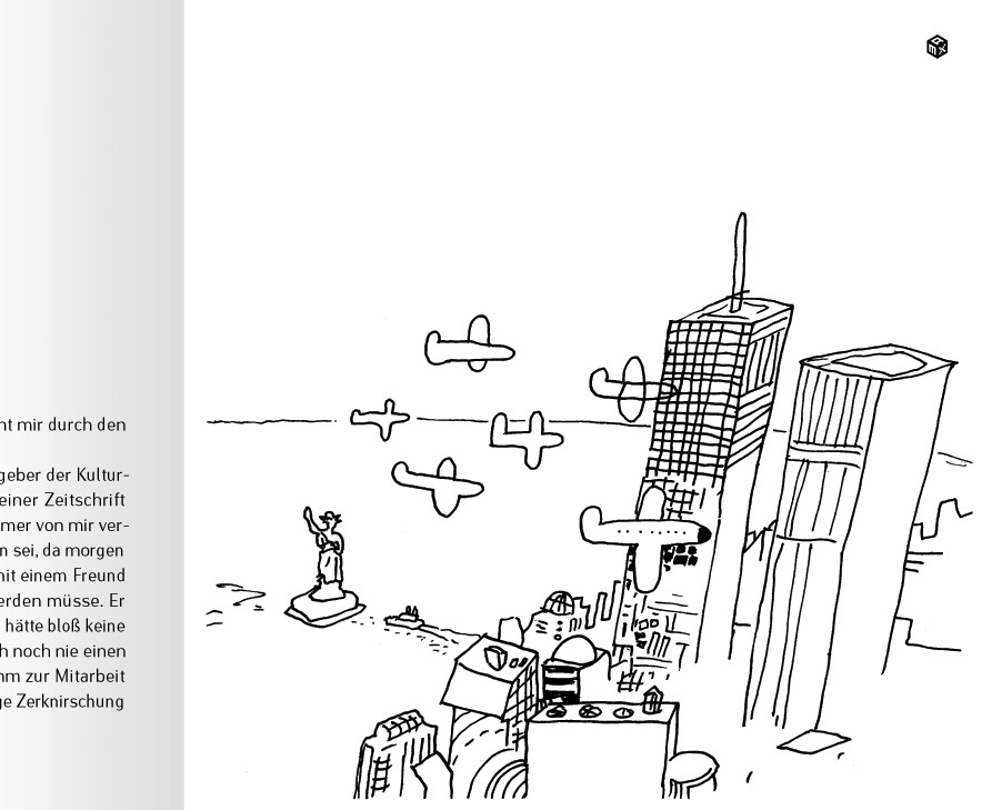 Illustration for the magazine „Akademische Mitteilungen 10“. This text of Max Goldt is about what happened to the author on the day of the 9/11-attack.